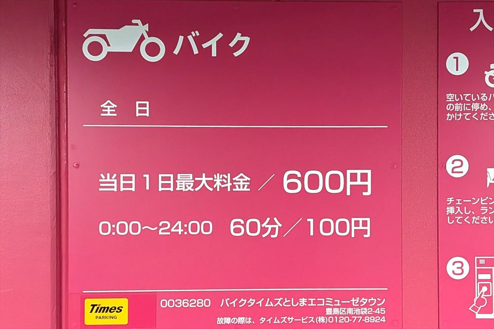 【タイムズステーション池袋バイク駐輪場】